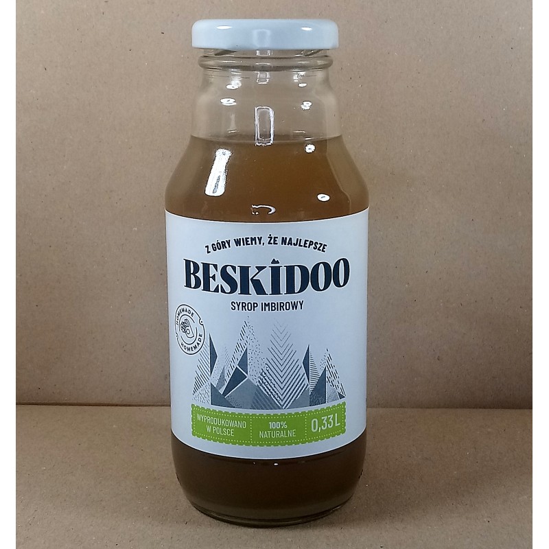 Syrop imbirowy - BESKIDOO - produkowany domowymi metodami bez konserwantów i sztucznych dodatków.